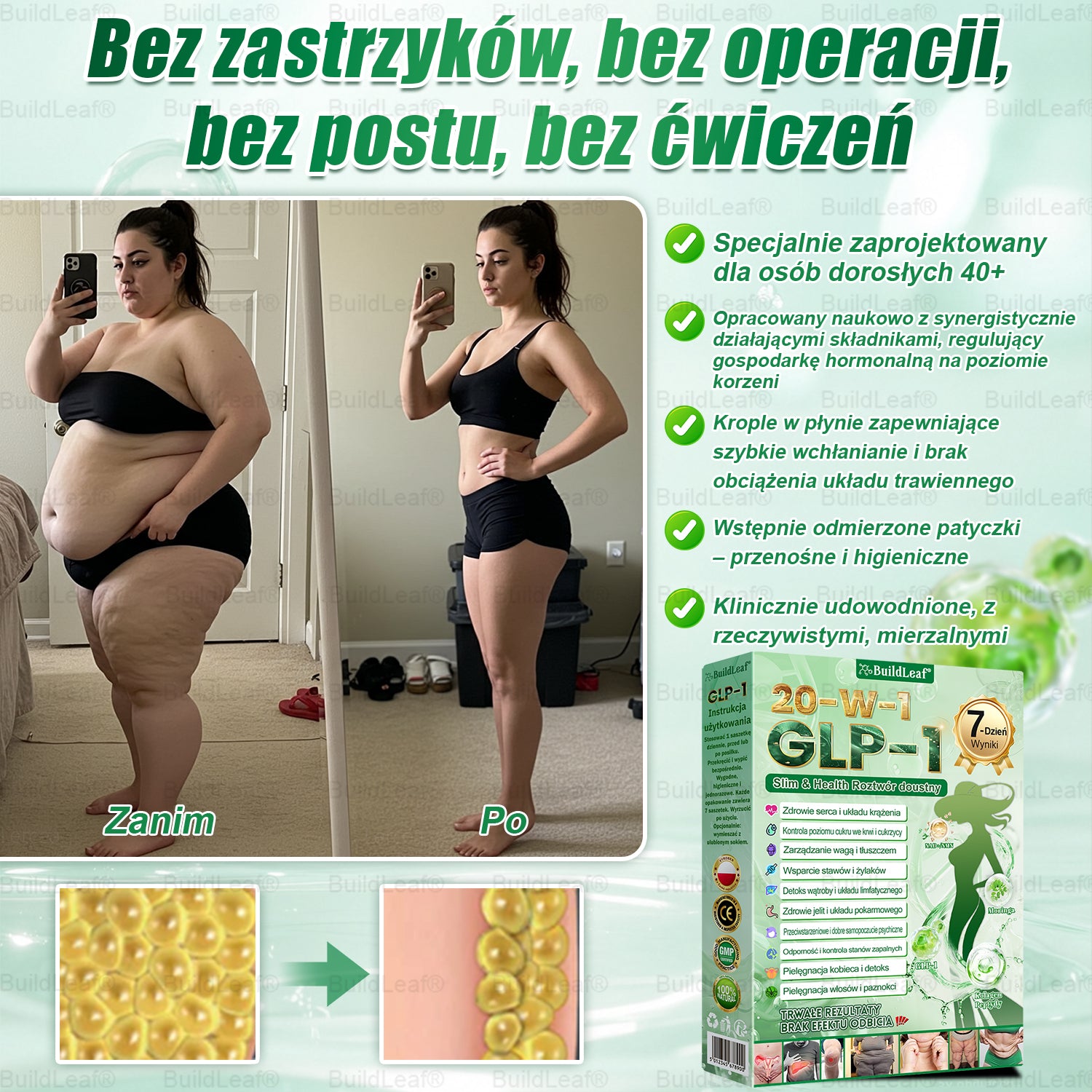 BuildLeaf ® GLP-1 20 w 1 Smukła i Zdrowa Sylwetka – Doustne Podawanie,